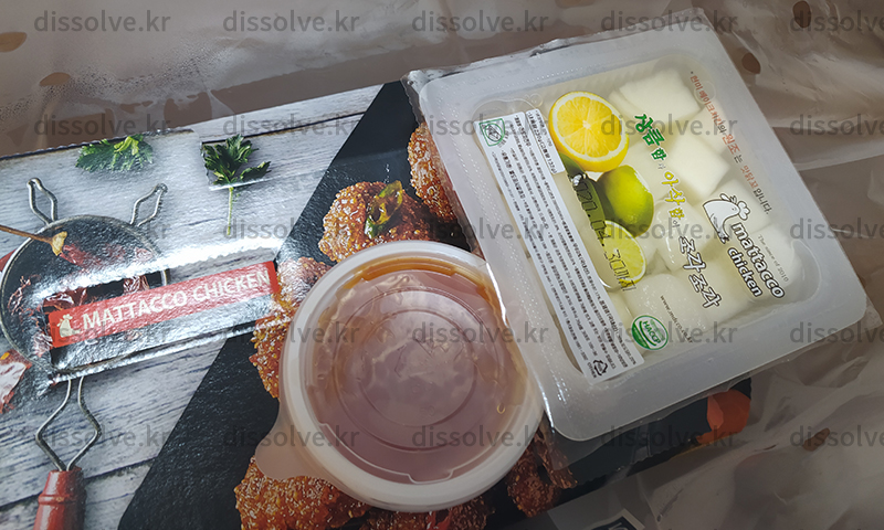 닭, 소스, 무 의 3가지가 포장세트다. 무에도 맛닭꼬가 인쇄되어있는 걸보니 저것까지 본부에서?