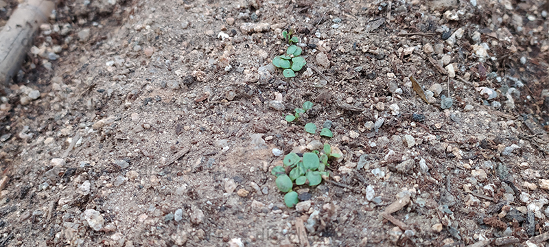몇 가지가 나왔고 아직 싹트이지 않는 종류도 있다. 비를 먹음고 쑥~쑥~ 자라 수확되기를... 몇 주안에 자람이 튼튼하지 않으면 모종을 구입해 심어야할 수도 있겠다.
